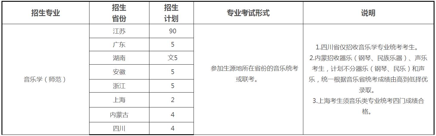 ②音樂學(師范)入校后只提供鋼琴、聲樂、民族樂器方向教學。注:①招生專業、計劃以生源地所在?。ㄊ校┱猩鞴懿块T公布的為準;