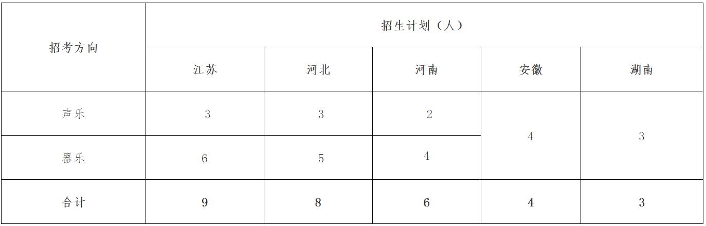 音樂學辦學層次為本科,學制4年,2020年招生計劃30人,含聲樂和器樂,分省招生計劃如下。