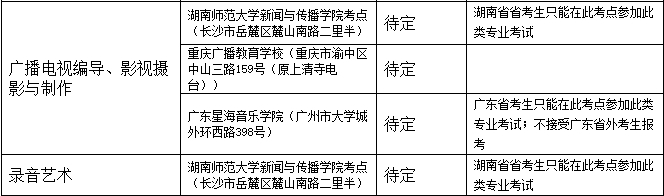 6、我校部分專業會在外省設立考點,具體考試時間安排待確定后將陸續公布,考生可根據自身實際情況選擇考點。凡考生高考所在省設有考點,考生只能在本省考點參加專業考試。外省考點所在省份有專門規定,考生須遵照執行。具體分布如下: