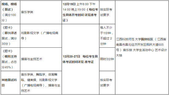 面試考場(chǎng)全部安排在江西科技師范大學(xué)楓林校區(qū)。