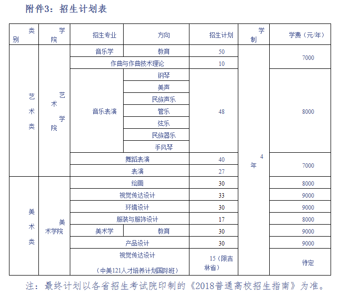 5、吉林省、黑龍江省、遼寧省的招生計劃按照朝鮮族、非朝鮮族單列。視覺傳達設計(中美121人才培養計劃國際班)只招吉林省考生,不限民族。