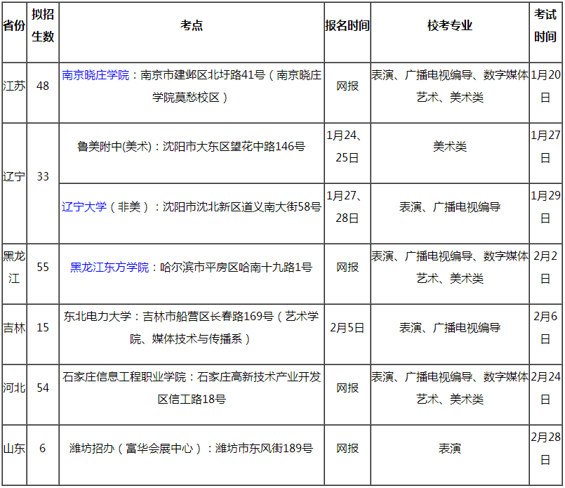 (1)吉林省、黑龍江省、山東省、河北省、江蘇省招收視覺(jué)傳達(dá)設(shè)計(jì)、環(huán)境設(shè)計(jì)、動(dòng)畫(huà)、服裝與服飾設(shè)計(jì)、表演、廣播電視編導(dǎo)、數(shù)字媒體藝術(shù)專(zhuān)業(yè)7個(gè)專(zhuān)業(yè)。