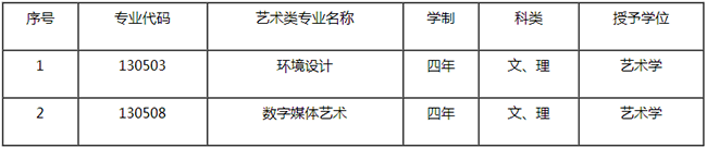 學(xué)院2018年藝術(shù)類招生專業(yè)2個(gè),文理兼招。具體如下: