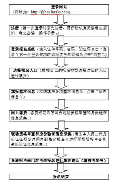 (一)報名基本流程為:考生網(wǎng)上填報基本信息→網(wǎng)上繳費→現(xiàn)場資格審查和身份驗證信息采集→各地招考部門對考生報名進行最終確認(編排考生號)。