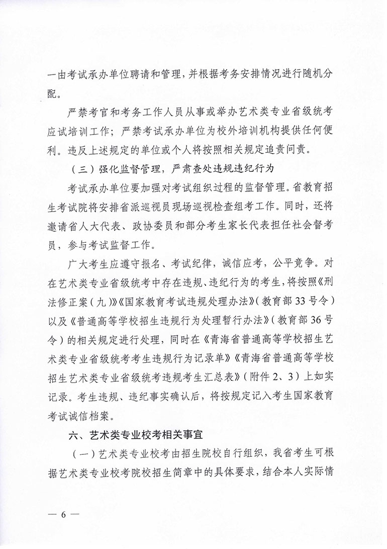 上一篇: 2024年青海省進一步加強和改進普通高校藝術類專業考試招生工作實施方案