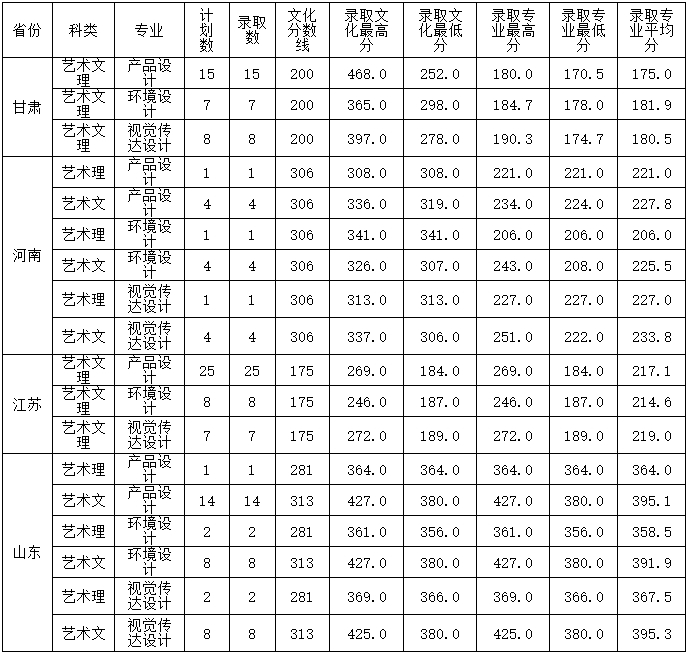 2017年山東交通學(xué)院本科美術(shù)類專業(yè)錄取信息統(tǒng)計