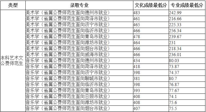 2019年美術類專科專業錄取分數統計表(山東省)德州學院2019年22省錄取情況統計表
