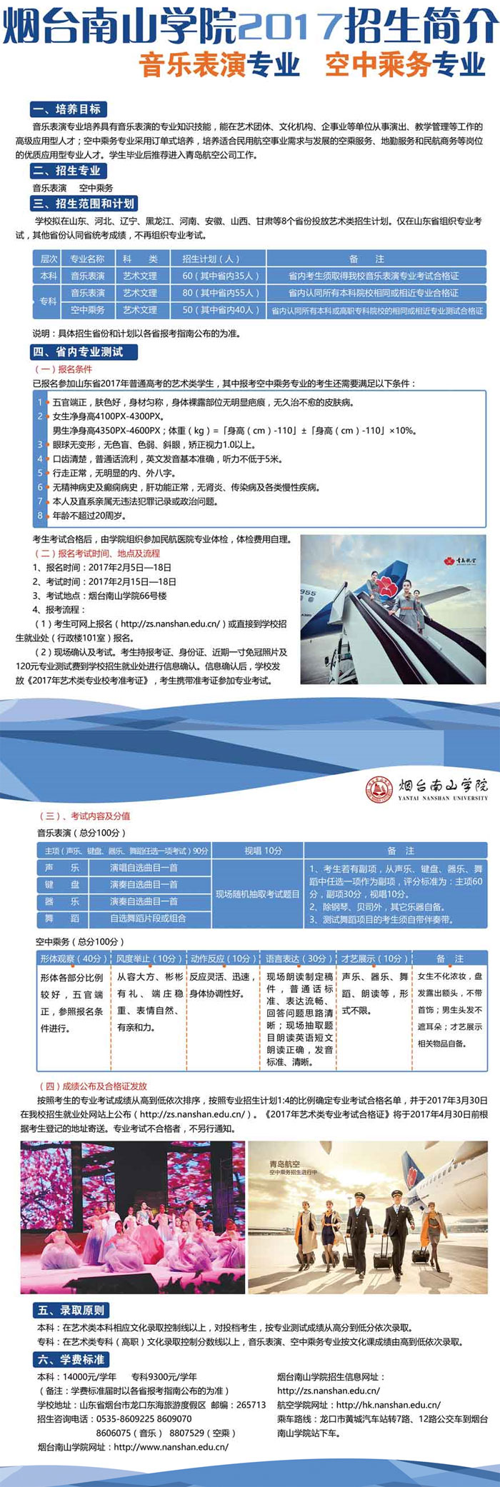 煙臺(tái)南山學(xué)院2017年藝術(shù)類招生章程