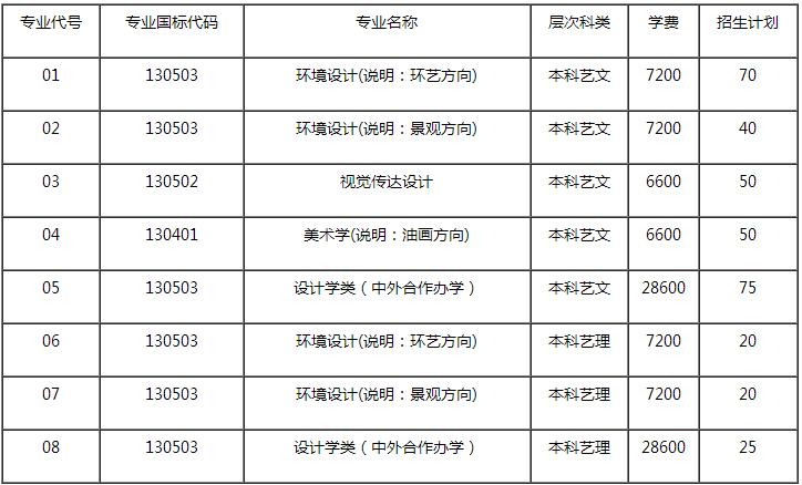 環境設計專業(說明:景觀方向)(學制:四年;授予學位:藝術學學士)