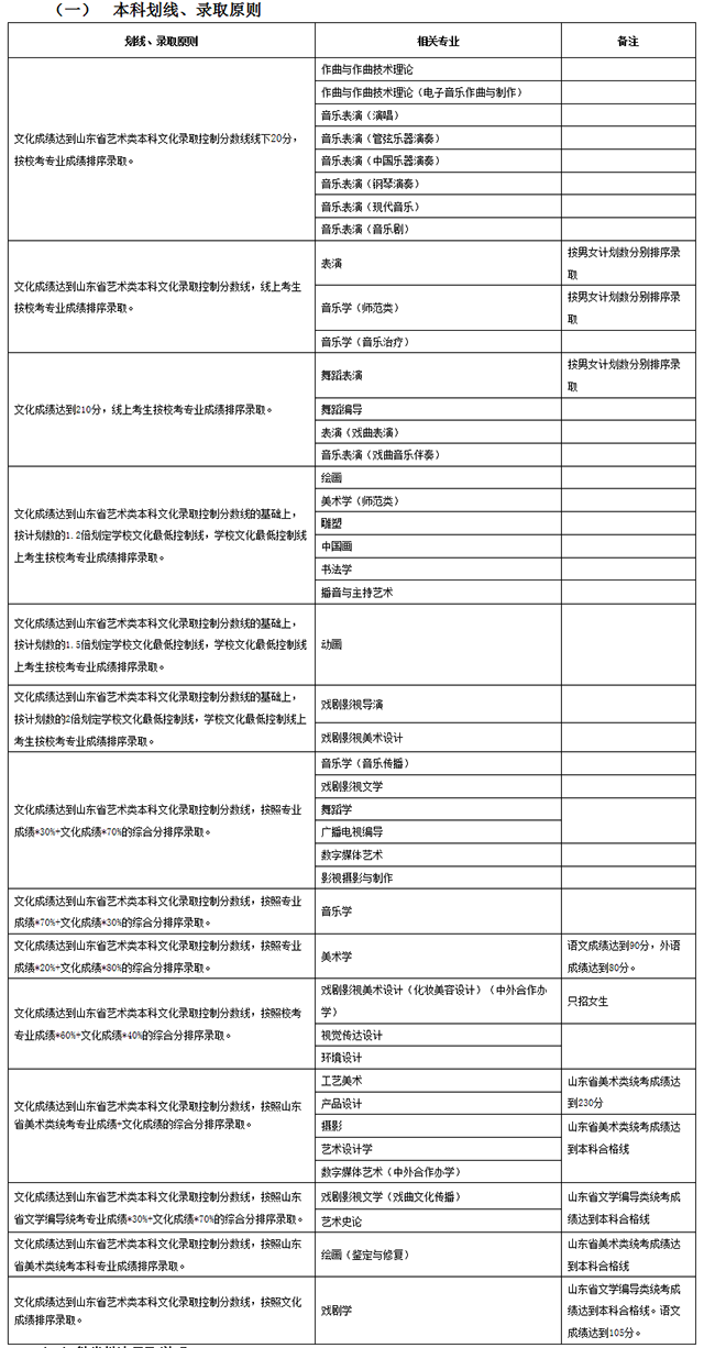 按照教育部及山東省有關(guān)規(guī)定,我校為獨立設(shè)置的本科藝術(shù)院校,可自行劃定文化錄取控制分?jǐn)?shù)線。