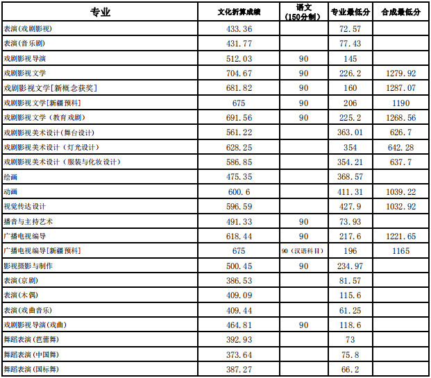 2018年上海戲劇學院本科各專業錄取分數線[藝術類]