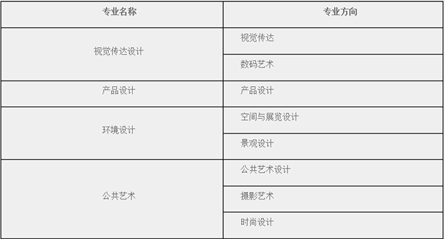 1、招生專業:設計學類,含4個本科專業8個專業方向。