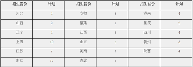 2、招生計劃:全國招生計劃125名,擬分省計劃如下(最終以各省級招生管理部門公布的為準):