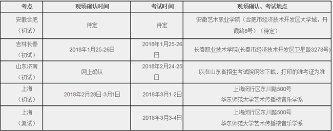特別提醒:1、根據山東省招生管理部門要求,山東省考點考生還須自行登錄山東省招生考試院網站(http://wsbm.sdzk.gov.cn/art)進行報名、繳費。報名繳費從2018年1月31日開始,截止到2018年2月7日下午5點。考生請于考試前2天下載、打印準考證,考試地點見準考證。安徽省、吉林省考生還必須分別按照安徽省、吉林省考點有關規定參加對應網上報名。