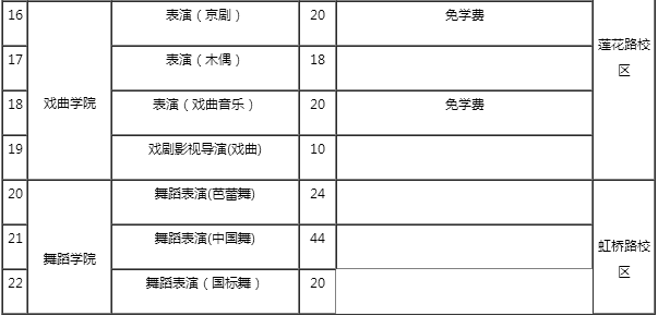 (二)每學年學費 10,000 元,如有變動,按政府有關部門審核的新標準收取。家庭經濟困難的新生,可以申請國家助學貸款。表演(京劇)和表演(戲曲音樂)專業學生按上海市政府關于京昆專業助學獎學金的文件精神免除學費,住宿費、教材費等按規定另行繳納。