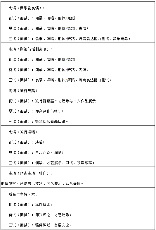 凡報考我校各招生專業的考生,須參加當地省級招生部門組織的高等學校招生文化課統一考試和相應門類藝術專業考試(普通類專業除外)。