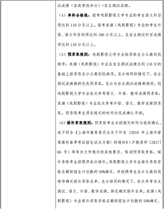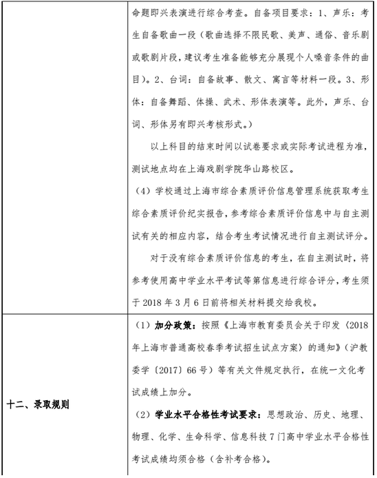 上海戲劇學(xué)院2018春季高考招生章程