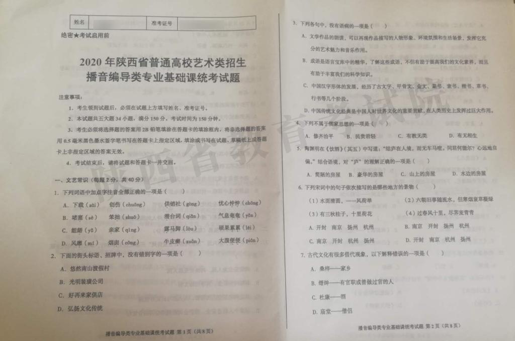 上一篇: 2020年陜西省普通高校藝術(shù)類招生播音編導(dǎo)類專業(yè)基礎(chǔ)課筆試統(tǒng)考試題