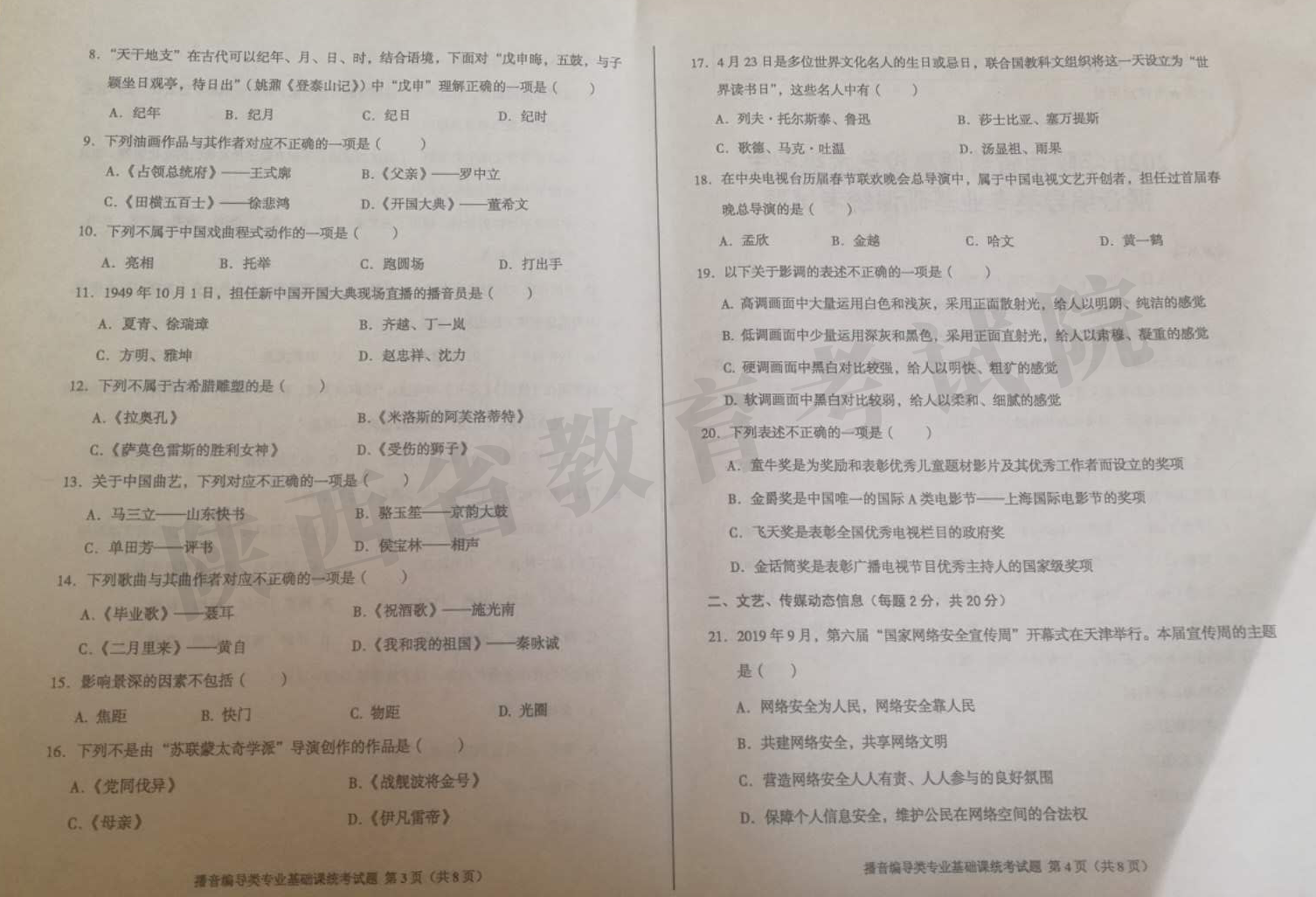 上一篇: 2020年陜西省播音編導(dǎo)類專業(yè)基礎(chǔ)課統(tǒng)考試題評析