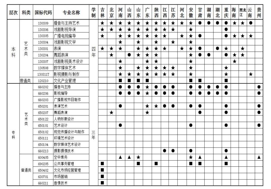 三、四川電影電視學(xué)院 2017 年招生省份專業(yè)一覽表