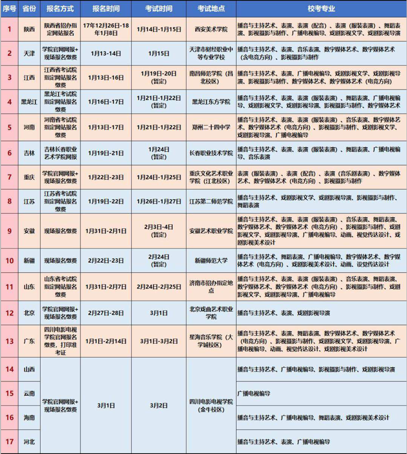 五、四川電影電視學(xué)院2018年藝術(shù)專業(yè)報名考試時間及地點