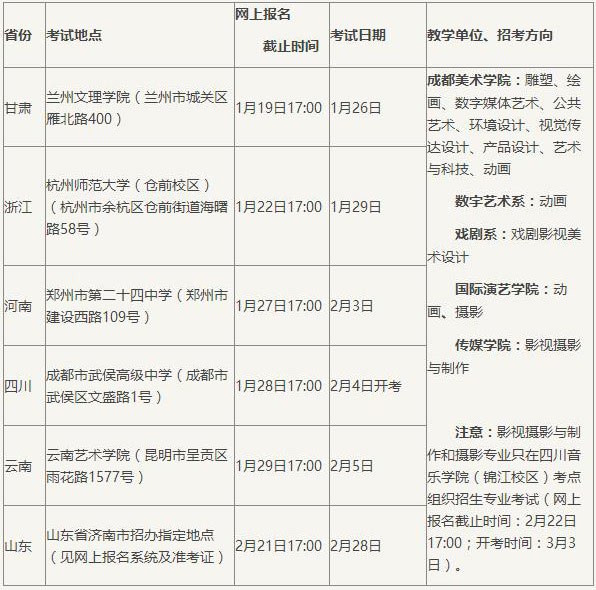 四川音樂學(xué)院(錦江校區(qū))考點(diǎn)各專業(yè)考試日期標(biāo)注為開考時(shí)間,各專業(yè)考試結(jié)束時(shí)間待網(wǎng)上報(bào)名結(jié)束后才能確定。