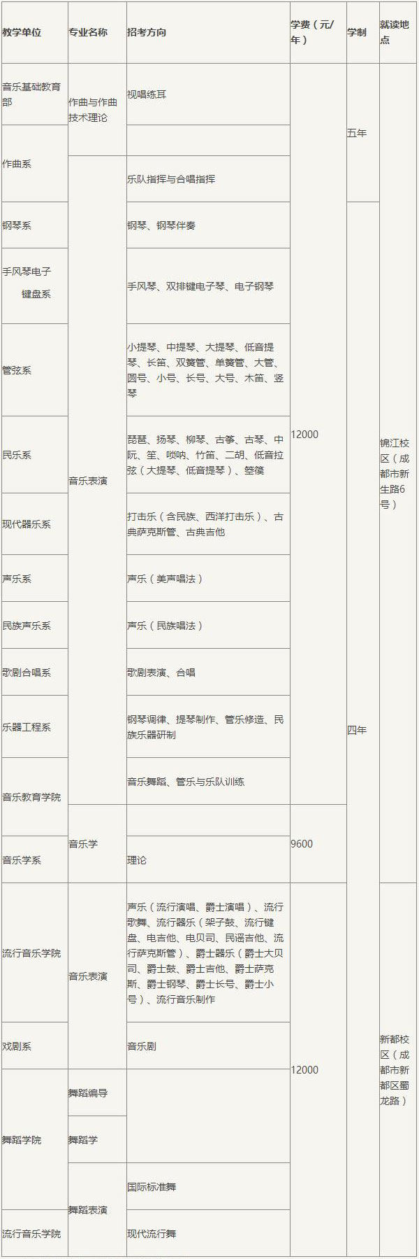 招生部門:四川音樂學(xué)院招生處