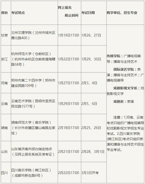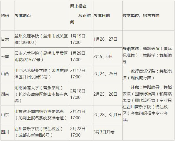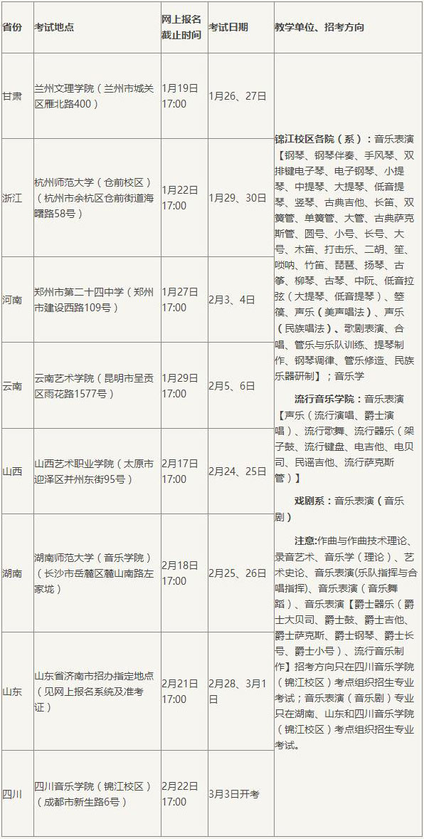 (一)音樂類專業(yè)省外考點(diǎn)有關(guān)說明: