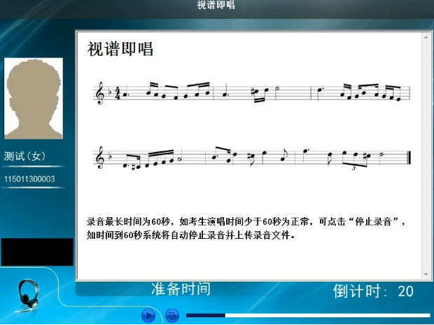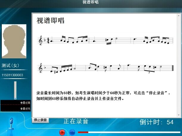 3.播放完開始音后界面出現60秒倒計時,此時開始考試,系統開始錄音。