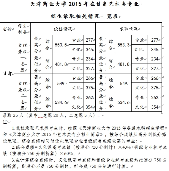 綜合成績=文化課高考成績(按滿分750分制計)×40%+省級專業統考成績(按滿分750分制折算)×60%。