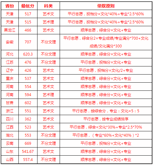 1、省級專業統考成績須達到生源所在省、自治區、直轄市本科報考資格,同時高考文化課成績須達到生源所在省、自治區、直轄市藝術類本科錄取投檔分數線及以上。