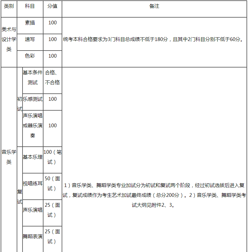 (四)考生在報考時只能選擇美術與設計學類、音樂學類、舞蹈學類中的一類報考,不能跨類混報。