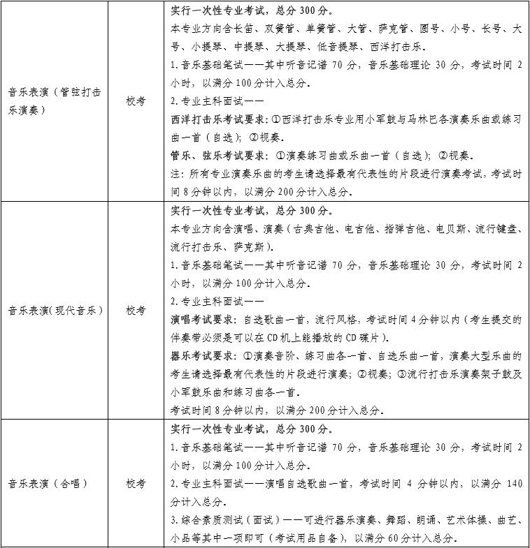 2.音樂學(xué)(民族音樂理論)、音樂學(xué)(音樂治療)兩個專業(yè)的“演唱或演奏(面試)”科目進行一次性考試,成績通用。