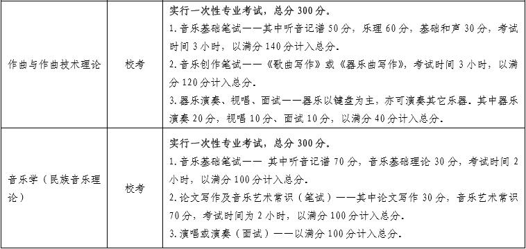 注:1.音樂學(xué)(民族音樂理論)、音樂學(xué)(音樂治療)及音樂表演所有專業(yè)方向“音樂基礎(chǔ)筆試”科目進行一次性考試,成績通用。