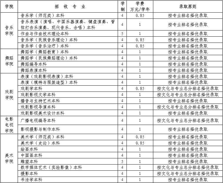 (二)我院作為教育部確定的 “31 所獨立設(shè)置的本科藝術(shù)院校”之一,自行劃定本院在全國各省區(qū)招生錄取時的各藝術(shù)類專業(yè)文化最低控制線,在錄取前報有關(guān)省級招辦或招生考試院備案。