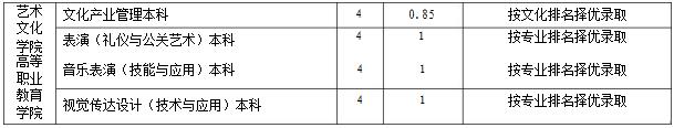 我校除招收高考報考科類為藝術類(文理兼招)的考生外,文化產業管理本科專業招收普通文科類和理科類考生,專業免試,文化最低控制分數線執行二本線(分文理),參加普通文理科類二本批次錄取,按藝術類專業培養,授予藝術學學士學位。