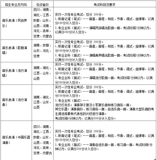 注:1.作曲與作曲技術理論及音樂表演所有專業方向“聽音記譜(筆試)”科目實行一次性考試,成績通用。