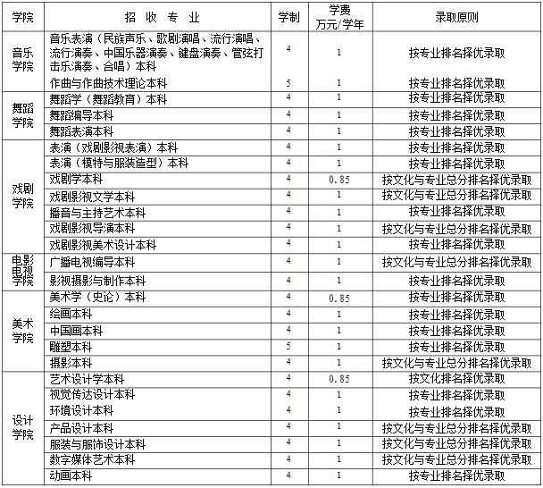 (二)我校為教育部批準的獨立設置本科藝術院校,藝術類本科專業在省外不編制分省分專業招生計劃,可自主劃定各藝術類本科專業高考文化成績錄取控制分數線(在錄取前報有關省(區)招辦備案),如各?。▍^)對藝術類文化最低錄取控制分數線另有要求的,按照考生所在?。▍^)規定執行。