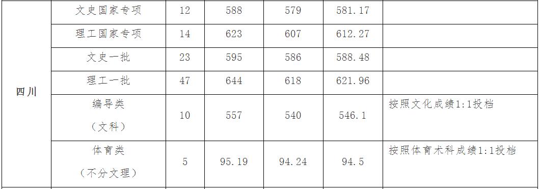 | 專業 | 錄取數 | 最高分 | 最低分 | 最低分對應位次號 | 平均分 |