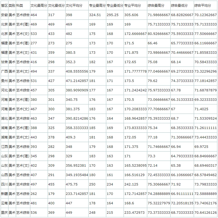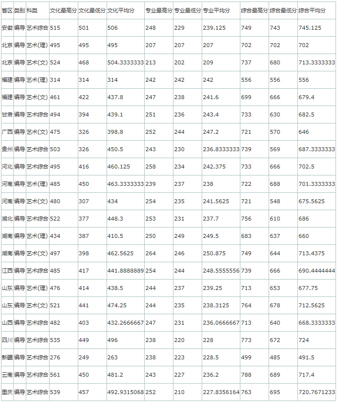 2016年藝術(shù)本科(編導(dǎo))專業(yè)錄取分?jǐn)?shù)線