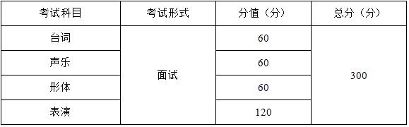 考查考生的外部形象、個性特征與表演綜合素質。表演綜合素質包括考生的信念感、感受力、想象力、理解力、表現力、應變能力等,以及小品的構思與完成能力。